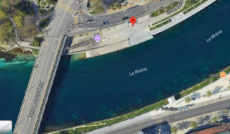 Lieu : Rampe sur le quai du Seujet, voir photo et lien ci-dessous