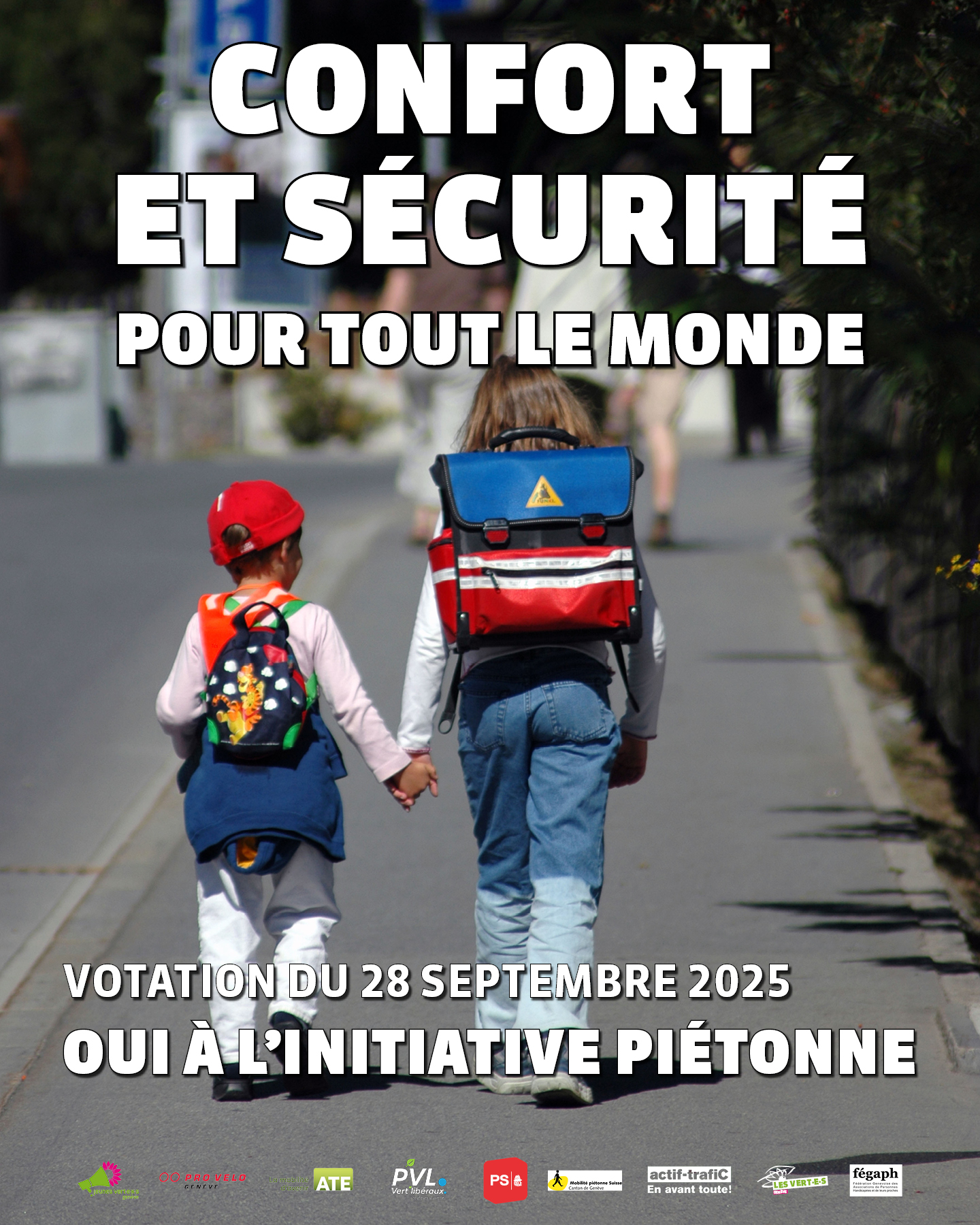 Les Vert-e-s, les Jeunes Vert-e-x-s, le Parti socialiste, les Vert’ libéraux, l’ATE, actif-trafiC, PRO VELO Genève, Mobilité Piétonne et la fégaph appellent à voter OUI le 28 septembre à l’initiative IN 192 « Pour un canton qui marche ».