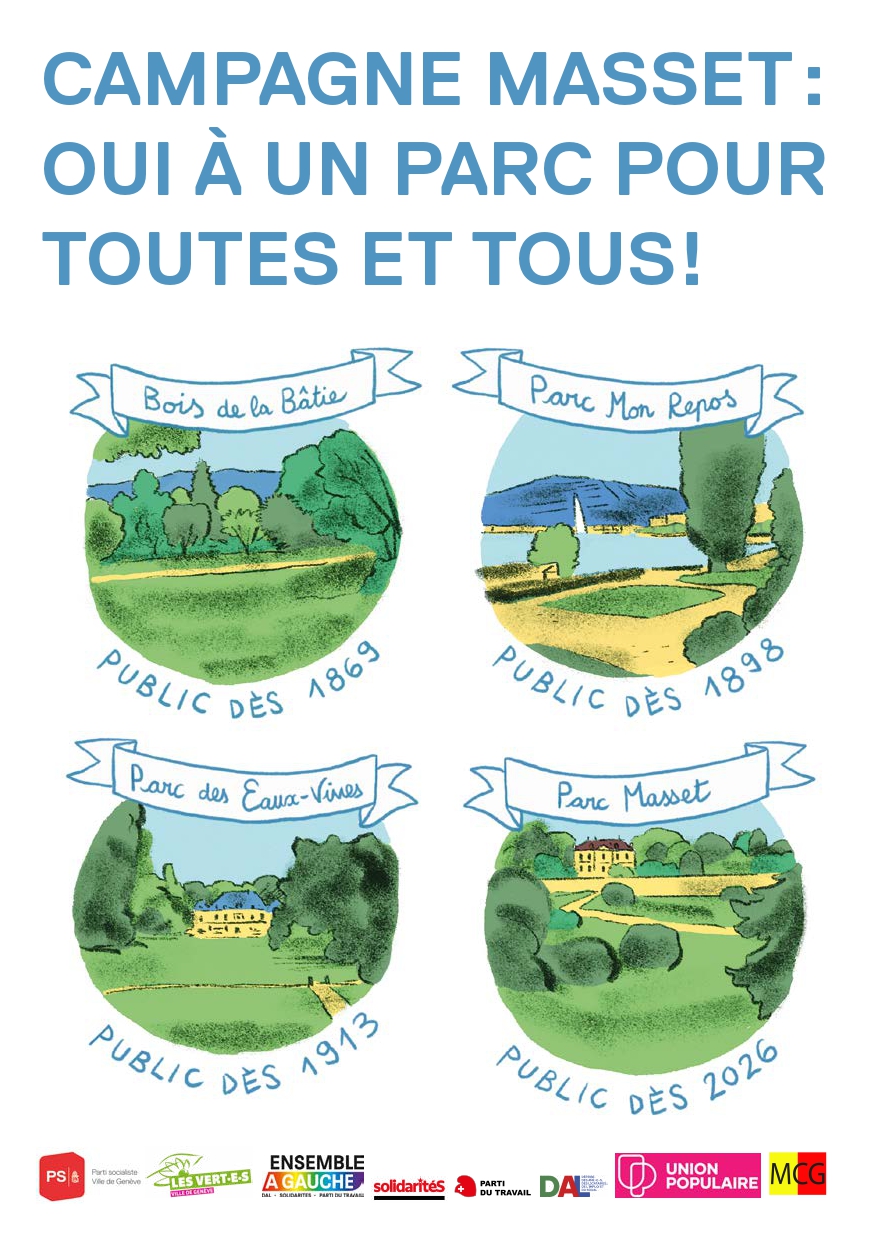 La campagne pour la Campagne Masset bat son plein. Retrouvez les militants sur les stands, partagez nos contenus sur les réseaux sociaux. Ensemble nous pourrons offrir un nouveau parc aux genevois et genevois-es !